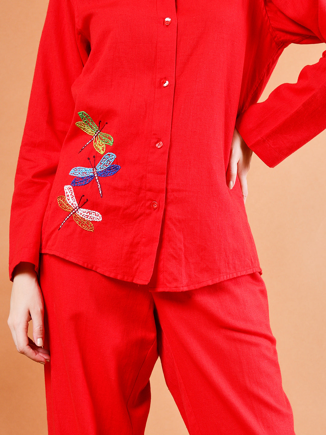 Elevate your style with our stunning Red Coord Set, crafted from ultra-soft, breathable organic cotton. This set features: